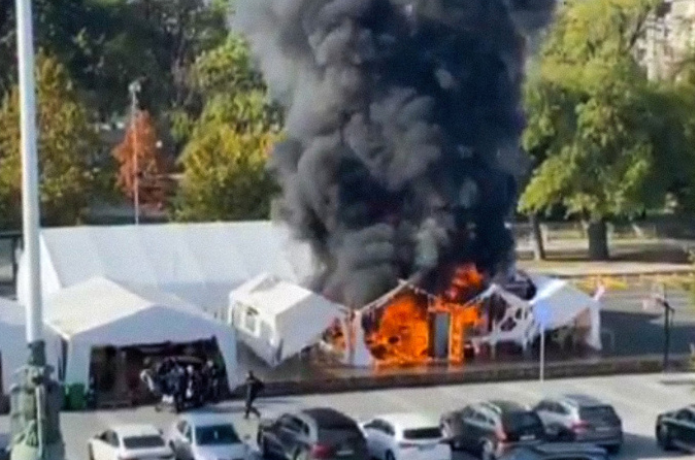 Presidente serbio califica de terrorismo incendio frente al Parlamento