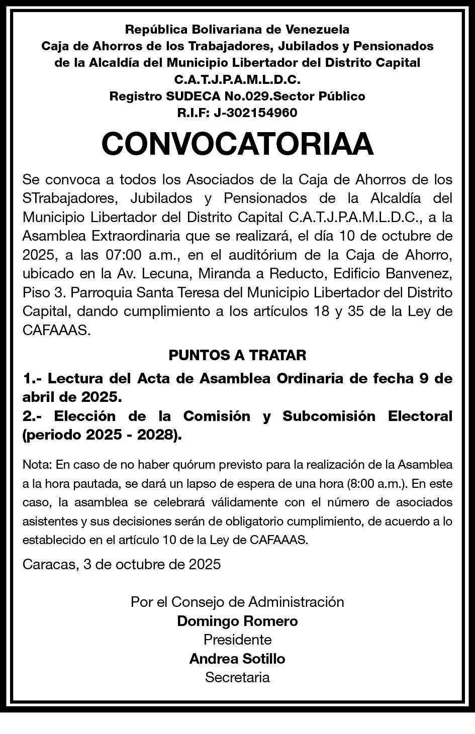 C.A.T.J.P.A.M.L.D.C Notificación Feha Publicación : 2025-10-03