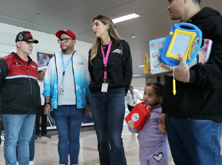 10/02/25.- El Gobierno venezolano rescató a la niña Aurora Cáceres, de 4 años, quien fue secuestrada por el Gobierno de los Estados Unidos y separada injustamente de sus padres. Ella llegó este viernes al país en un nuevo vuelo de la Gran Misión Vuelta a la Patria (GMVP), que arribó al Aeropuerto Internacional Simón Bolívar, en el estado La Guaira.