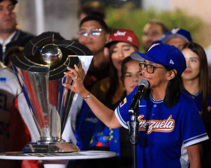 La Presidenta encargada de la República Bolivariana de Venezuela, Delsy Eloina Rodríguez Gómez, no se despegó de la pantalla televisina y al final de la histórica contienda peloteril, saludo a los heroes y anunció que el 17 de marzo fue decretado el Día del Beisbol en Venezuela y que el trofeo recorrerá todos los estados del país.