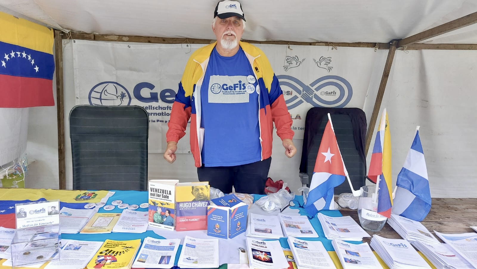 Conocí a Carsten Hanke el año pasado en el Encuentro Mundial Antifascista. Muchos ñángaras ya nos habíamos hecho amigos y advertimos que Carsten estaba solo. No hablaba inglés ni español. Sin embargo, este señor de imponente porte estaba feliz de estar en Venezuela. Por suerte, pude comunicarme con él en alemán, y nos integramos todos de inmediato. Carsten Hanke no solo es un militante comunista de corazón, sino que su convicción política lo ha llevado a dar un paso al frente en beneficio de la humanidad. Junto a Carolus Wimmer, fundó en 2020 la Sociedad por la Paz y la Solidaridad Internacional (GeFis, por sus siglas en alemán). Se trata de una organización que brinda apoyo político y económico a través del trabajo de solidaridad con todas las fuerzas progresistas de América Latina. El equipo de GeFis no solo está comprometido con transmitir en Europa la verdad sobre los movimientos progresistas en Latinoamérica a través diversos eventos y acciones de calle, sino que, además, recolecta dinero y medicinas en Alemania para brindar asistencia a Nicaragua, Cuba y Venezuela. La solidaridad de Carsten hacia nuestra Revolución Bolivariana incluso lo llevó a participar en nuestro país desde 2020 como observador electoral internacional.