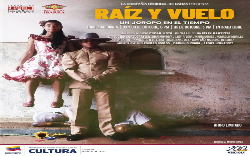 01/10/25.- La producción Raíz y Vuelo: Un joropo en el tiempo se estrenará el próximo 3 de octubre en la Hacienda Ibarra, ubicada en las instalaciones de la Universidad Central de Venezuela (UCV), en Caracas, así lo confirmó la Compañía Nacional de Danza (CND).