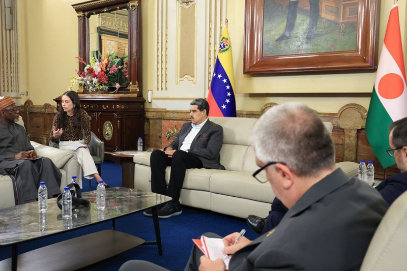 02/10/25.- El presidente de la República Bolivariana de Venezuela, Nicolás Maduro, sostuvo un encuentro productivo con el Excelentísimo Señor Yaou Sangaré, ministro de Asuntos Exteriores de la República de Níger con la finalidad de fortalecer los planes conjuntos para el desarrollo de áreas estratégicas de Venezuela y la Madre África.
