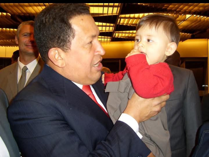 Cuando nació en París, Aló Presidente retumbaba en sus oídos. Hasta que Hugo, una de las veces que fue a Francia, me dijo... "¿Dónde está tu carajita?". Esta foto fue su único encuentro. Desde entonces, Natalia no lo olvida y se pregunta a veces cómo es que está y no se ve en el Cuartel de la Montaña.