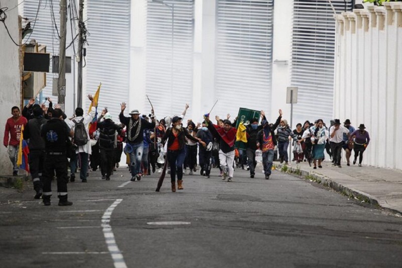 Cuando las protestas cumplen este sábado dos semanas desde el inicio del conflicto, las autoridades de la Confederación de Nacionalidades Indígenas de Ecuador (Conaie) y sus bases evalúan la posibilidad de llamar a un paro nacional indefinido, reseñó la prensa ecuatoriana.