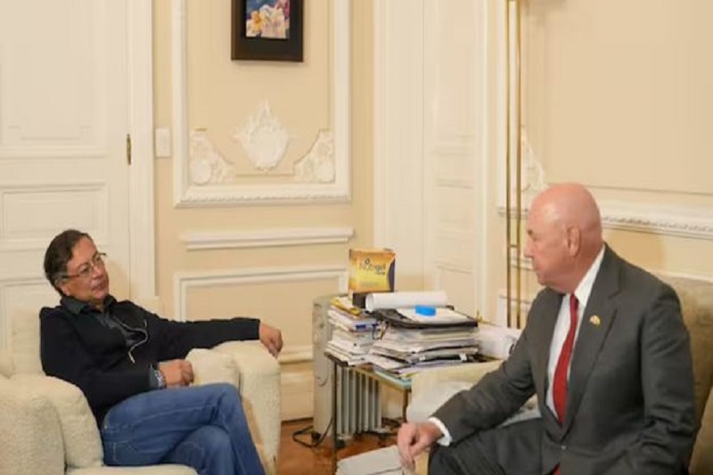 21/10/25.- El presidente Gustavo Petro y el encargado de negocios de Estados Unidos en Colombia, John McNamara, se reunieron en la Casa de Nariño para aliviar las tensiones diplomáticas surgidas a raíz de los insultos de Donald Trump contra el jefe de Estado colombiano.