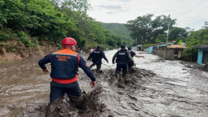 22/10/25.- Las intensas y continuas precipitaciones registradas en las últimas horas, atribuidas al paso de la onda tropical número 48, han provocado el desbordamiento de varios ríos en el estado Sucre, así como calles inundadas en los estados Mérida y Barinas.