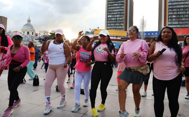 24/10/2025.-Este jueves, la Plaza Diego Ibarra de Caracas vibró al ritmo de la música y la esperanza durante la cantata bailoterapia organizada en el marco del mes rosa, dedicado a la prevención del cáncer de mama. Mujeres de distintas edades y comunidades se congregaron para compartir una jornada llena de energía, salud y mensajes de autocuidado, bajo la guía de líderes sociales y autoridades locales.
