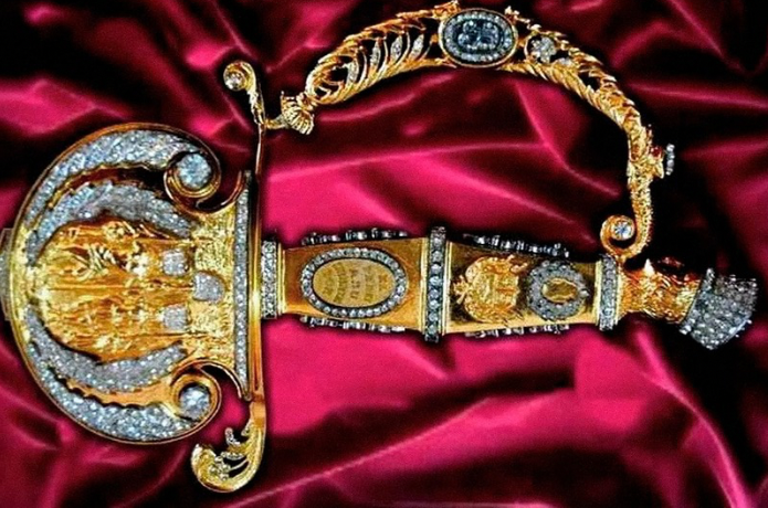 El 30 de octubre de 1825 el Libertador recibió la Espada del Perú tras alcanzar las victorias en las batallas Junín y Ayacucho. La misma está hecha completamente de oro macizo de 18 kilates, en el que sobresalen elegantes y variados dibujos y en su empuñadura posee diferente escritos honrando a Bolívar por su valentía y convicción de luchar por la libertad de las naciones latinoamericanas.