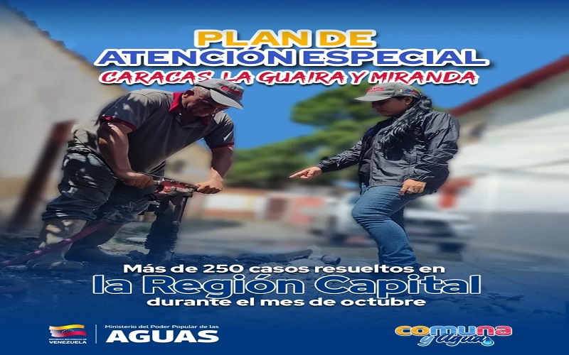 06/11/25.- Con un nivel de solución de 278 incidencias, la Fuerza Trabajadora del Agua logró ejecutar un Plan de Atención Especial para solventar 278 incidencias de agua potable y de aguas servidas en Caracas, La Guaira y Miranda, con objetivo de brindarle la atención a 14 mil 30 familias.