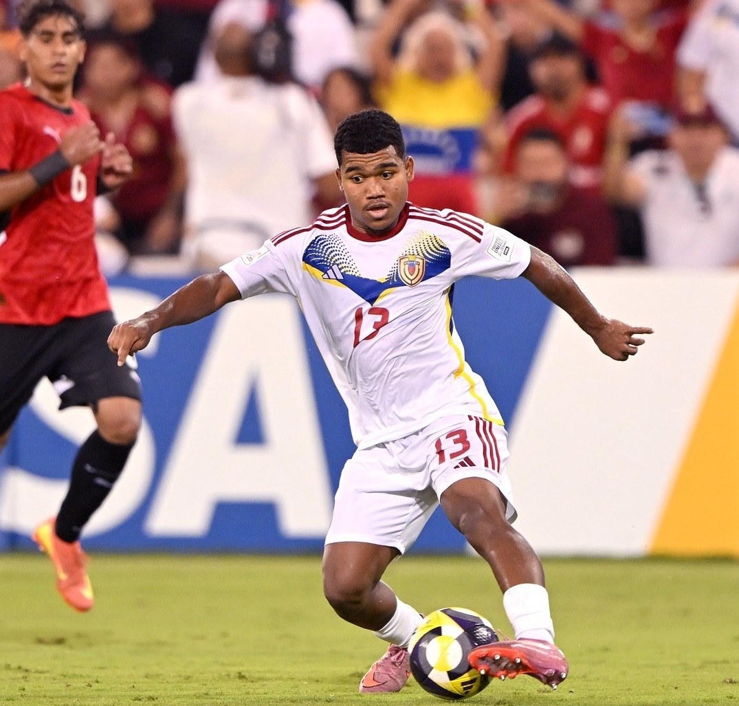 07/11/25.- La selección venezolana de fútbol cerró con empate ante Egipto (1-1) este viernes, su segundo partido en el Mundial Sub17 que se disputa en Catar, resultado que la deja a las puertas de clasificar a los dieciseisavos de final.