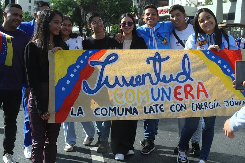 En medio de la marea de banderas, Jesús Moreno, 25 años, de la comuna José Félix Ribas, en Antímano, levantaba la voz: “Marchar es reafirmar que estamos organizados y somos parte de los cambios en el país. Gracias a la gestión comunal tenemos un comedor popular y jornadas de salud. Nos sentimos acompañados y respaldados”.