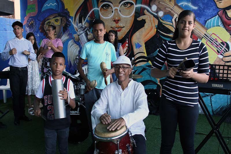 Para él, ahora trabaja con “semillas” nuevas, jóvenes que están en su Academia de música Emanuel (Dios con Nosotros), donde acoge a niños y niñas desde muy pequeños. “Tengo un alumno que tiene cuatro años, tienen que oírlo, ya está dándole a la tambora, una alumna de seis años que está dándole al teclado” relata Elio con orgullo.