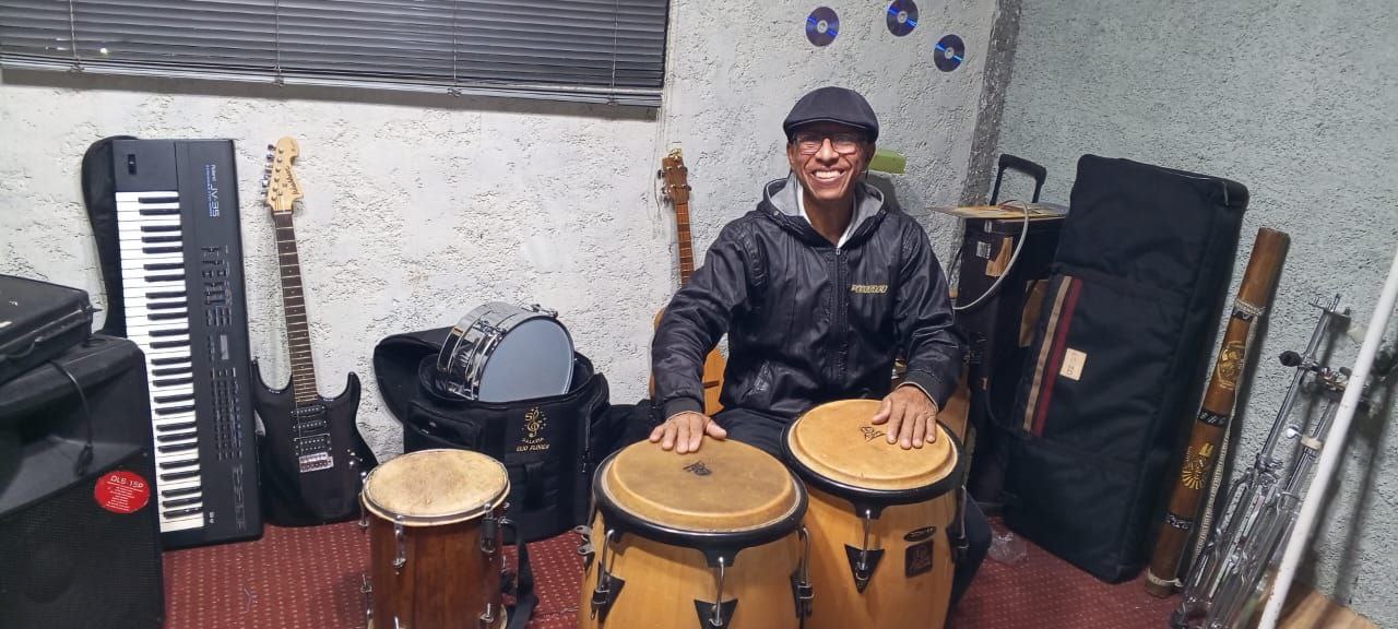 Ante la pérdida, el ingenio se hizo tambor. Elio relata cómo él y su tío, el músico Nelson Huerta (cuatro años mayor) improvisaron ritmos: primero, con un frágil perolito de leche y cartón; luego, con la resistencia de un pote de pintura Montana, más apto para el castigo de las baquetas hechas con palitos de gancho. Eran ritmos nacidos de la necesidad, pero cargados de alma.