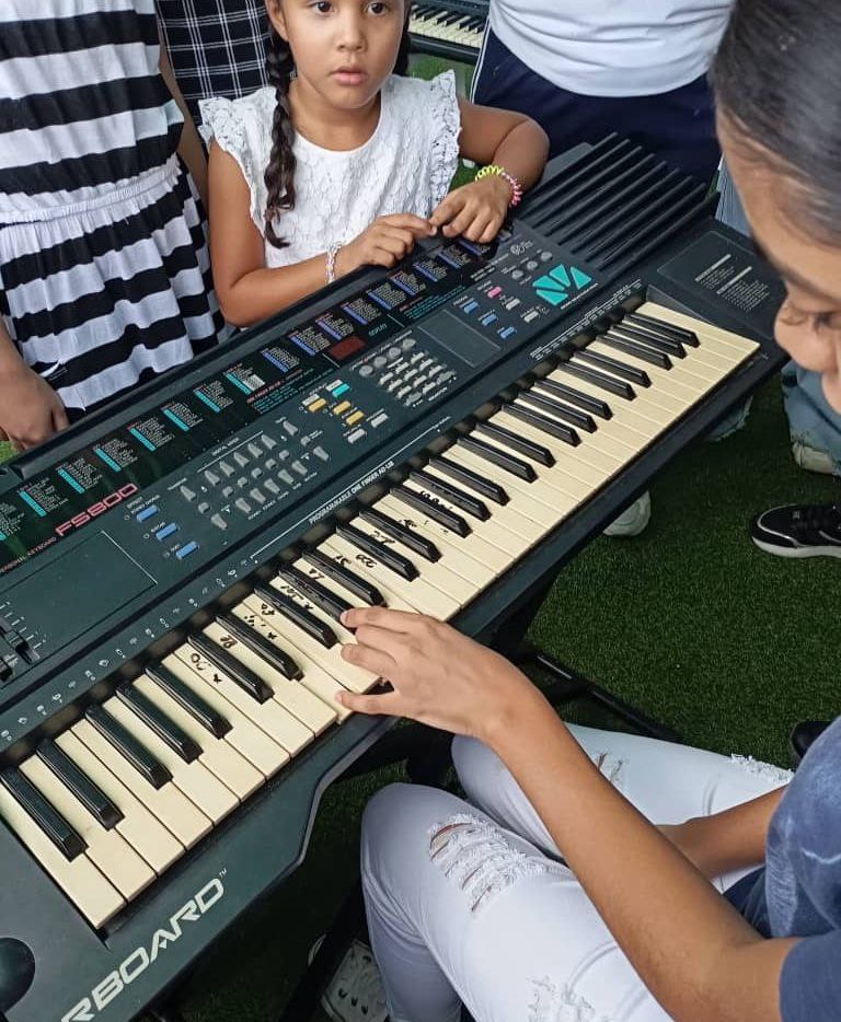 “Enseñar teoría musical, es la base del conocimiento, las notas musicales, darle algo de solfeo, para que vayan entendiendo, cuando vean un teclado, por qué son siete notas y se pueden hacer tantas cosas. Entonces, uno enseña todas esas cosas a ellos, van entendiendo”.