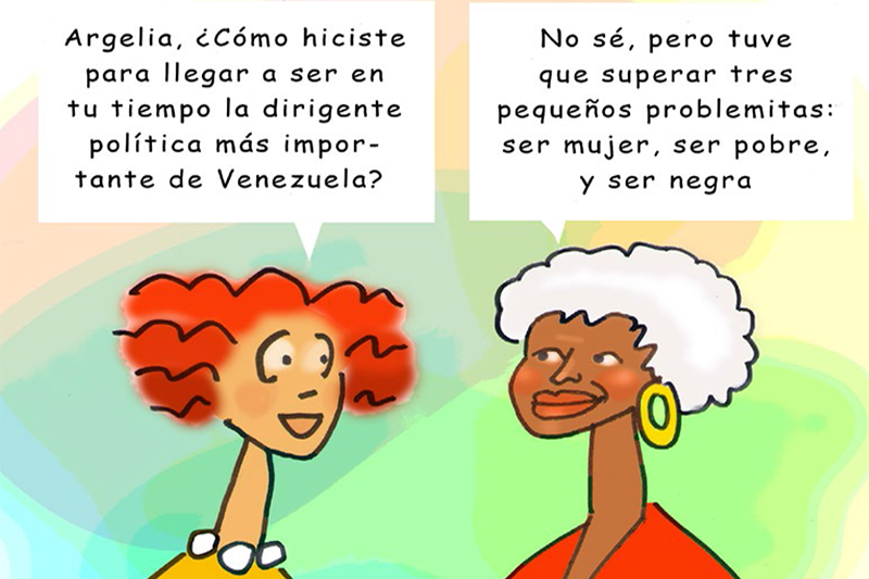 Su padre fue jefe civil de Río Chico, en tiempos de la godarria, de los grandes cacaos. Pero para esa gente era inadmisible un jefe civil negro en un pueblo de blancos, así que lo trasladaron a Los Teques. Al año muere el coronel Pedro Laya y lo ascienden a general post mortem. Argelia debió dejar la escuela “porque no tenían con qué comer, ni pagar el alquiler”. “Nos desalojaron y tuvimos que ir a un rancho que no tenía ni electricidad ni agua”, en Alta Vista, Catia. Era un cuarto donde todos dormían en una misma cama.