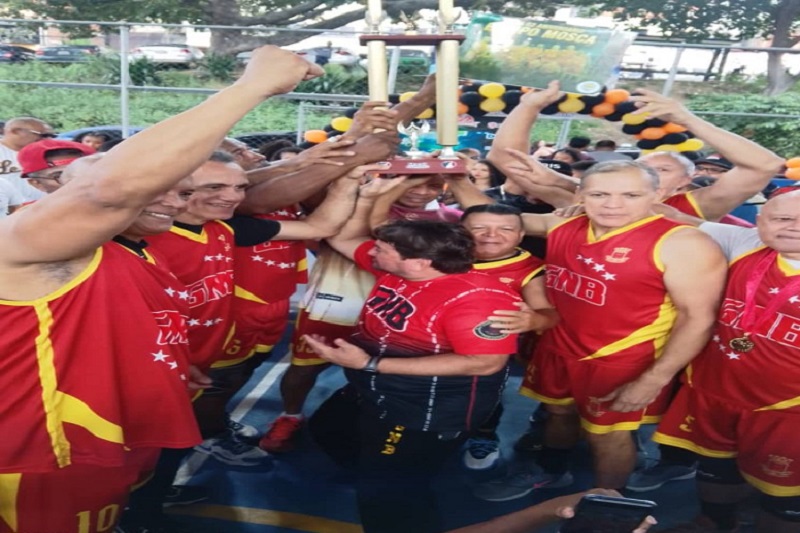 02/12/25.- Sin sorpresa alguna el poderoso equipo Guardia Nacional Bolivariana (GNB) se alzó con los máximos honores de la 9ª edición del máster 60 de baloncesto al derrotar a Profesionales 76 puntos a 51, en el juego final realizado con récord de concurrencia en las gradas de la cancha techada del bloque 20 de la Cañada del 23 de Enero, los del orden público se ampararon en 29 puntos de Howard Gerdel, para dejar en el camino a su peligroso rival.
