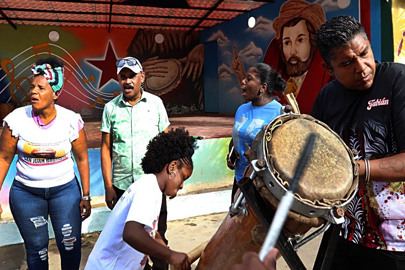 “Cuando empezamos a sacar la manifestación, exactamente en la calle 7 de Septiembre del barrio El Carmen, donde está la capilla, nos metimos a tocar un 24 (junio) y mucha gente nos felicitó”, cuenta Ochoa trayendo a escena esa emoción por la aceptación de la comunidad, que para la época ya estaba fundada y la mayoría de sus habitantes provenían del interior del país y conocían de San Juan y sus repiques de tambores.