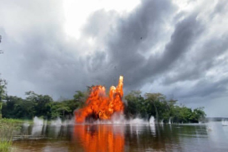 FANB destruye cinco barcas usadas para minería ilegal en Bolívar