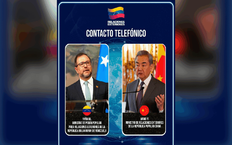17/12/25.- En un esfuerzo por consolidar los lazos de hermandad y cooperación internacional, el ministro del Poder Popular para Relaciones Exteriores de Venezuela, Yván Gil, sostuvo una conversación telefónica con su homólogo de la República Popular China, Wang Yi, en la cual ambos diplomáticos reiteraron el compromiso de defensa mutua frente a las agresiones externas.