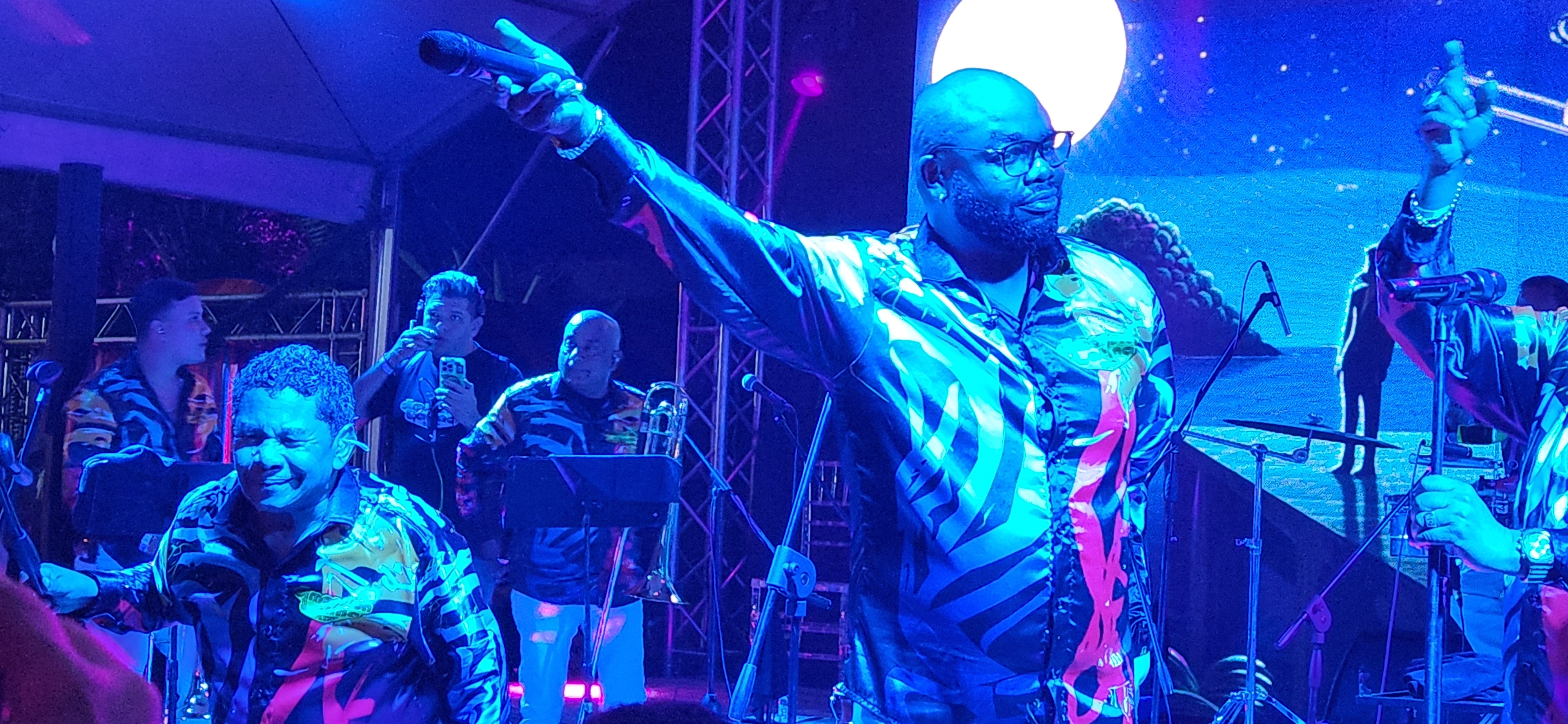 Pudimos apreciar dos temas que cantó Jhony Heredia, conocido por ser el doble oficial de Rubén Blades desde que apareció en el reality show Buscando una estrella, en 2014. Amor y control y Tiburón bastaron para darles la bienvenida a los salseros.