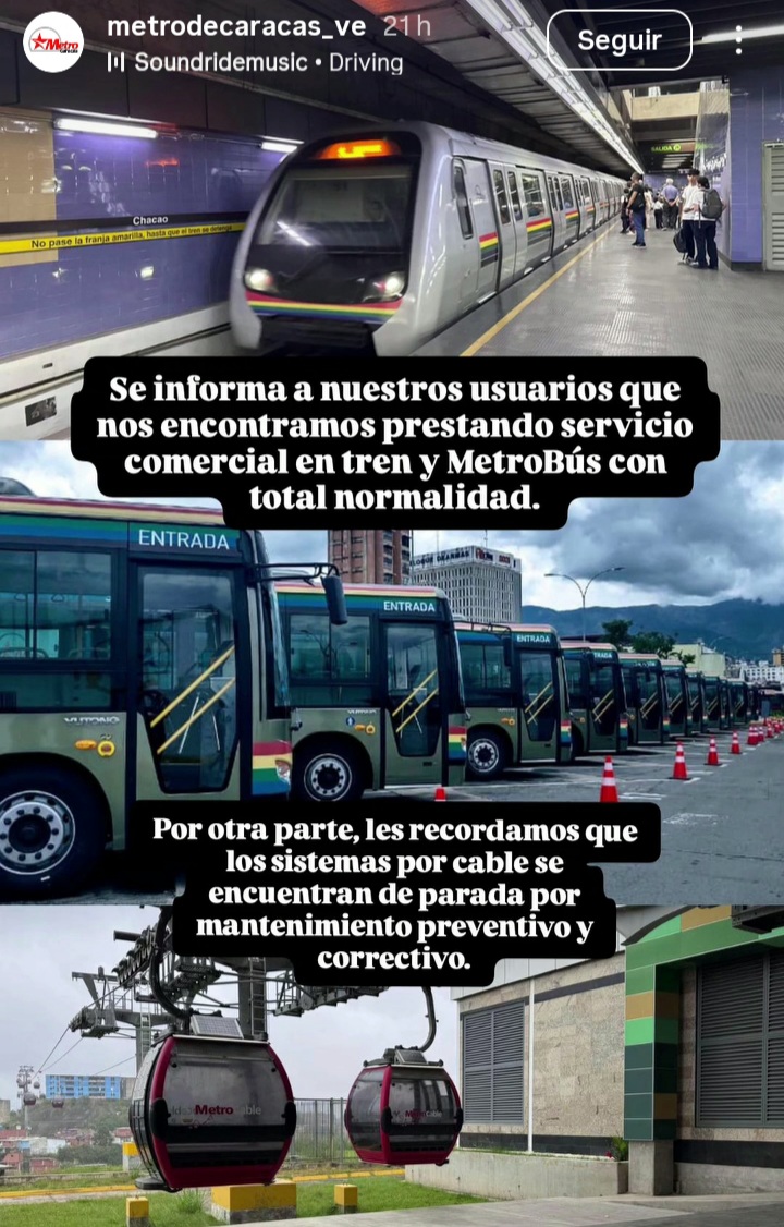 La información fue compartida a través de su cuenta Instagram @metrodecaracas_ve: