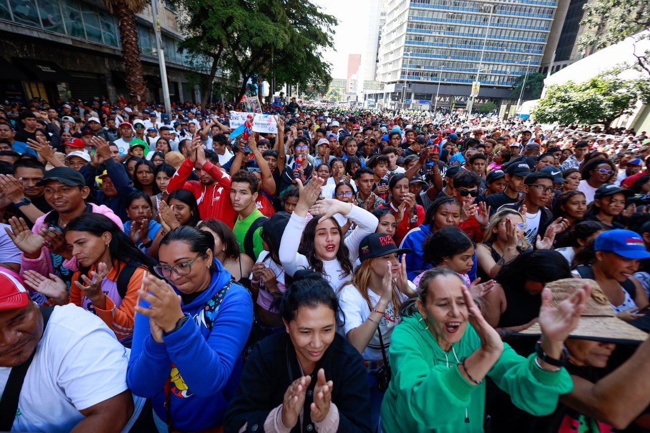 Desde la Plaza Venezuela, la multitud de jóvenes manifestó su esperanza y compromiso con el país. “Es el pulso de la juventud el que marca el camino de la resistencia. No podrán derrumbar los sueños construidos junto al presidente Maduro”, se escuchó entre los asistentes.