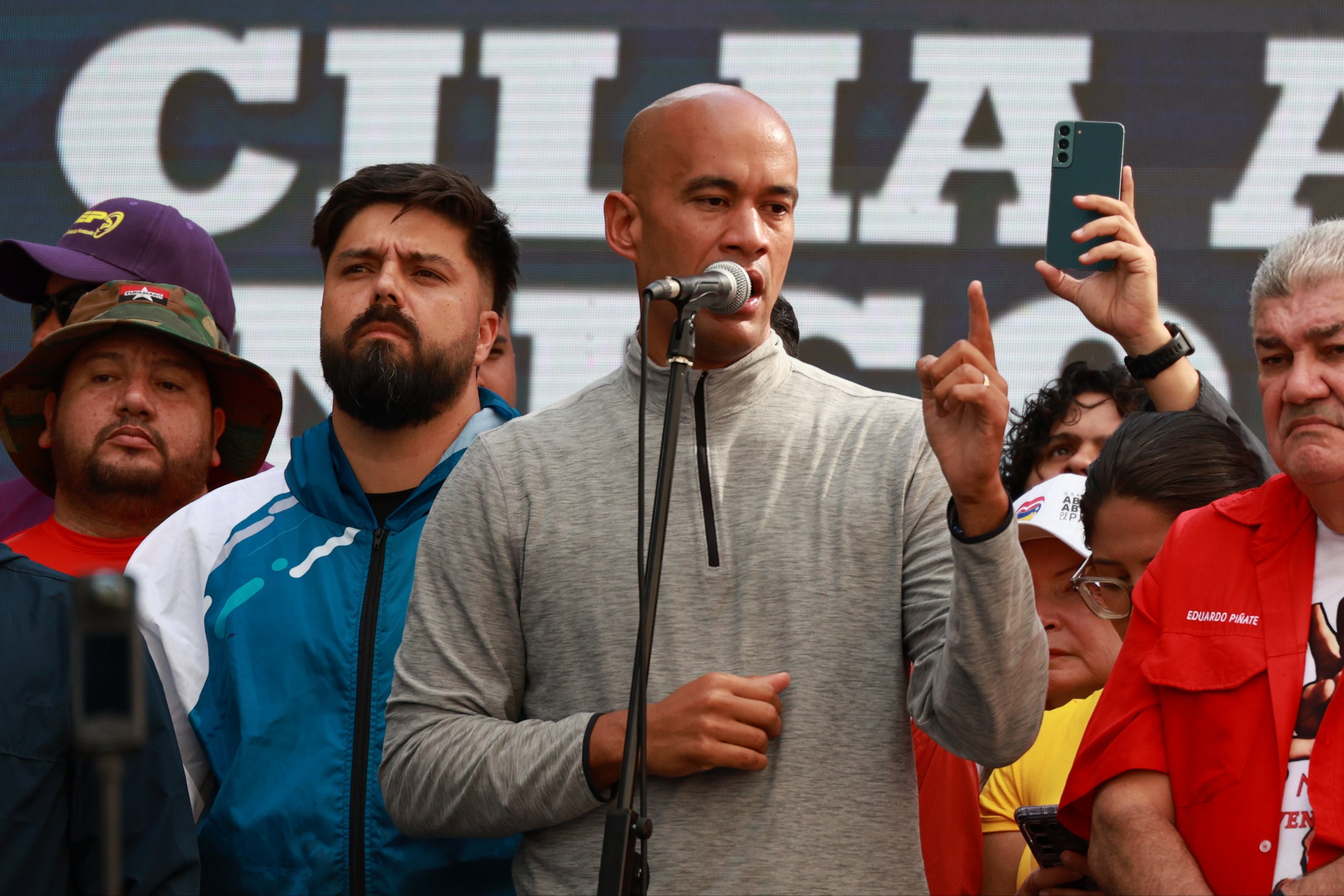 “Nuestra movilización permanente tiene como objetivo garantizar que se devuelva a nuestro presidente electo, constitucional, Nicolás Maduro, y a nuestra primera combatiente, Cilia Flores. Aquí está el pueblo caminando, exigiendo justicia”, expresó.