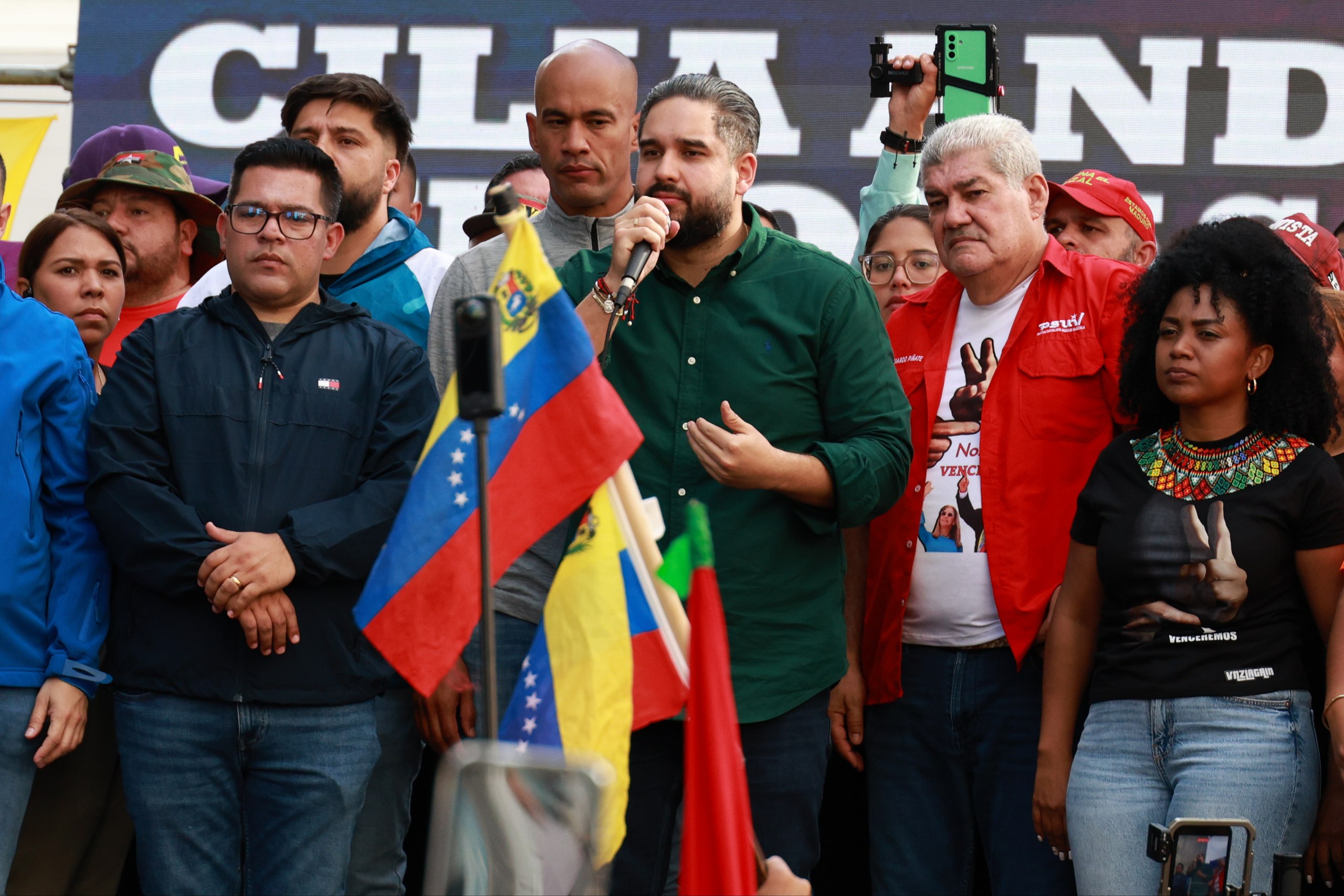 Por su parte, el diputado Nicolás Maduro Guerra, que también intervino en la concentración, agradeció las múltiples expresiones de solidaridad recibidas desde Venezuela y el mundo, al tiempo que denunció el secuestro del jefe de Estado y su esposa por parte de fuerzas extranjeras.