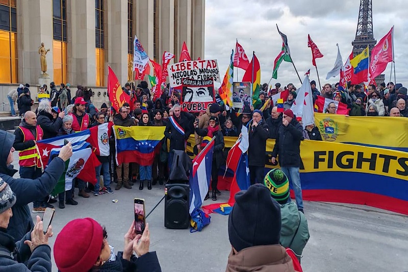 10/01/26.- Diversas organizaciones sociales y grupos de solidaridad internacional se han concentrado este fin de semana en las capitales de Francia e Italia para protestar contra el “secuestro” de Nicolás Maduro y Cilia Flores, capturados el pasado 3 de enero durante una operación militar estadounidense en Caracas.