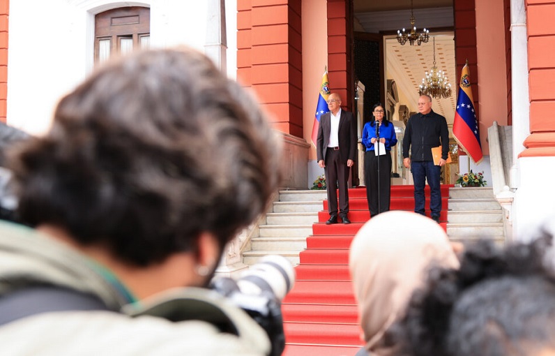 En declaraciones a medios nacionales e internacionales, desde el Palacio de Miraflores, Rodríguez aseveró que Venezuela se abre a este nuevo momento político, el cual garantizará el entendimiento desde la divergencia y la diversidad política ideológica, con respeto al otro y hacia los derechos humanos.