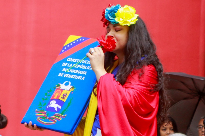 14/01/26.- La esquina Gradillas, en pleno corazón del casco histórico de Caracas, se transformó en un escenario para la reflexión y resistencia con la presentación de La V de la Matria, una pieza de teatro de calle dirigida por el reconocido dramaturgo venezolano Armando Carías y producida por la agrupación ComuniCalle.