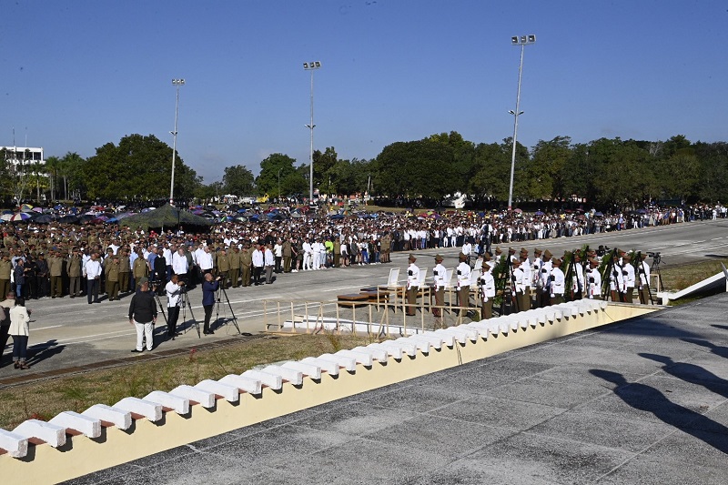 La ceremonia contó con la presencia de figuras prominentes como el actual líder histórico de la Revolución, general de Ejército Raúl Castro Ruz, y el presidente Miguel Díaz-Canel.