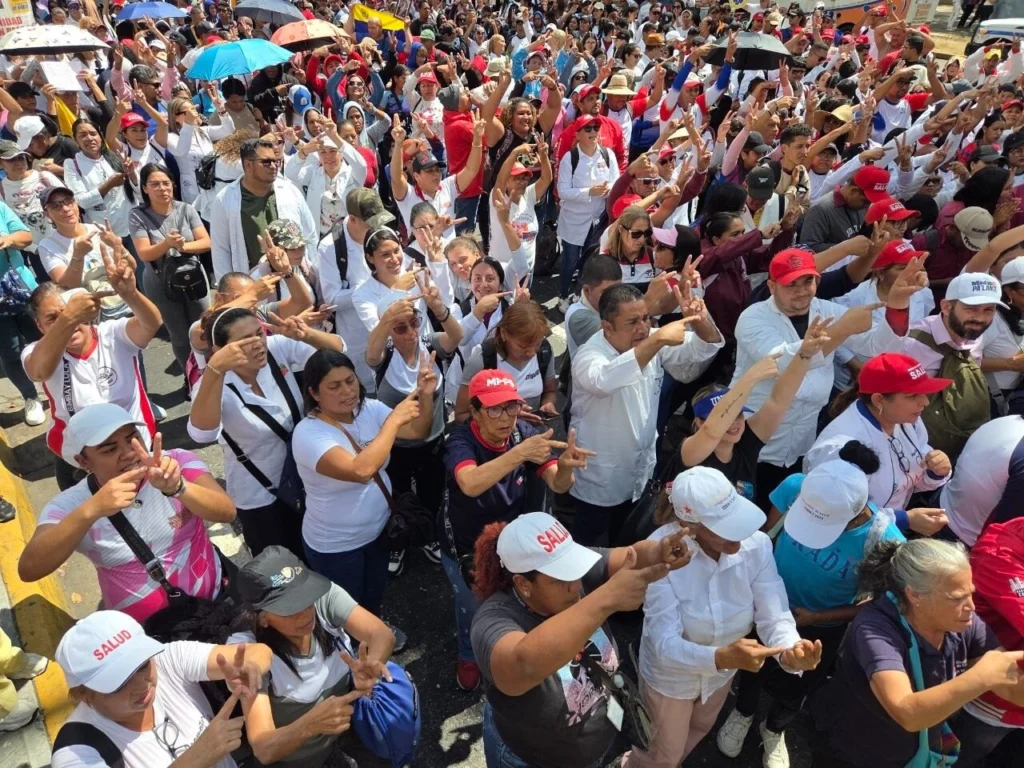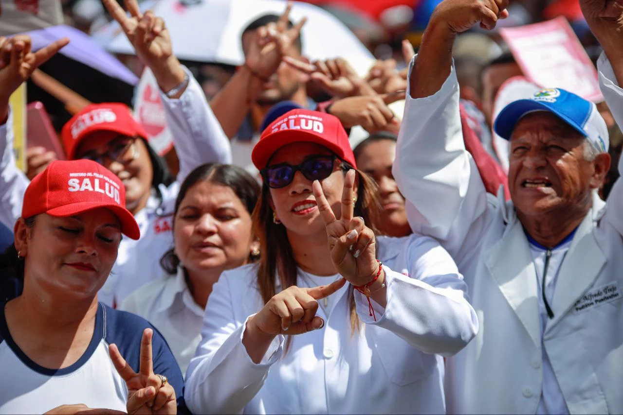 En la movilización, manifestantes destacaron aportes del presidente constitucional al sistema de salud pública, al tiempo que reafirmaron su compromiso con la defensa de la soberanía nacional.