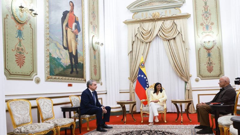 06/02/26.- La presidenta encargada de la República Bolivariana de Venezuela, Delcy Rodríguez, sostuvo un encuentro este viernes con el expresidente del Gobierno español, José Luis Rodríguez Zapatero, quien se encuentra de visita en el país, con el fin de intercambiar visiones sobre los avances en la reconciliación nacional y el fortalecimiento del diálogo político.