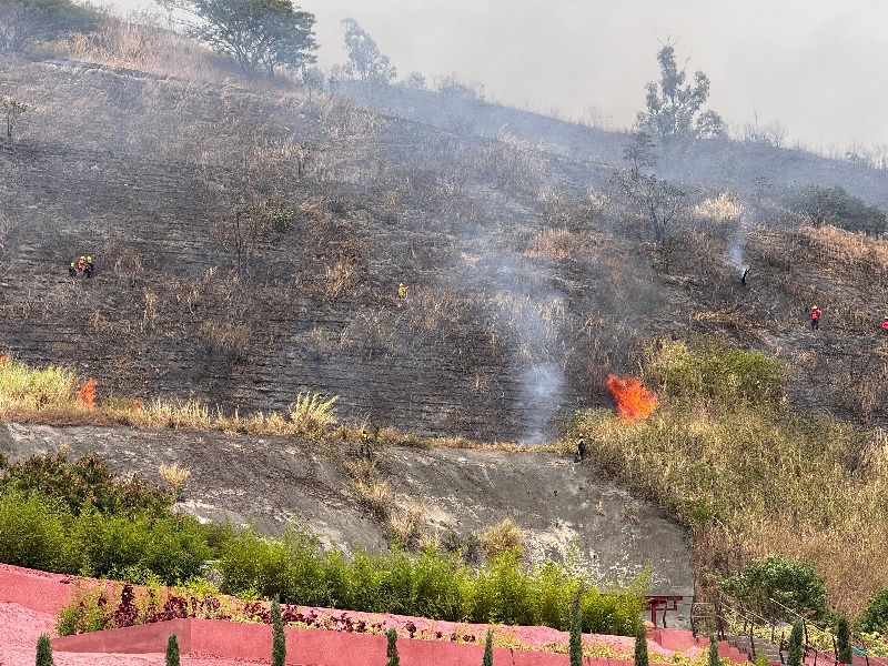 En el sitio, un equipo integrado por Protección Civil y Bomberos Forestales, trabajó para extinguir un incendio de vegetación baja.