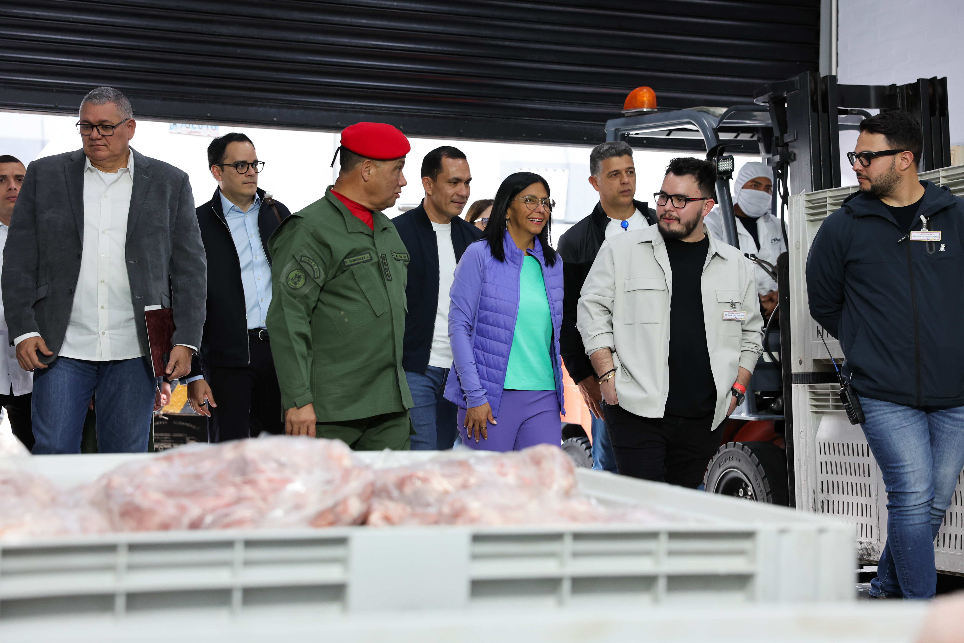 Rodríguez, acompañada por altos funcionarios del gabinete económico, recorrió las instalaciones de la planta, fundada en 2017 por jóvenes emprendedores venezolanos. La empresa, dedicada a la producción de embutidos y carnes procesadas bajo la marca L’Prado, es un ejemplo del encadenamiento productivo nacional que impulsa la soberanía alimentaria.