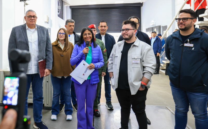 09/02/26.- En una jornada productiva realizada en la planta procesadora de alimentos Río de Oro, la presidenta encargada de Venezuela, Delcy Rodríguez, destacó los avances económicos del país, que cerró el 2025 con 19 trimestres consecutivos de crecimiento económico sostenido. Este logro, que incluye un aumento del Producto Interno Bruto (PIB) del 8% el año pasado, posiciona a Venezuela como un referente de expansión en Suramérica y el Caribe.