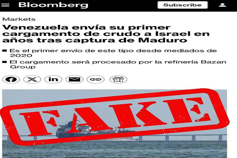 11/02/26.- El gobierno venezolano desmiente un nuevo “Fake news” sobre el supuesto envío de un cargamento de petróleo con destino a Israel, información que fue difundida por la empresa de noticias Bloomberg con el propósito de desacreditar la imagen internacional del país, denunció el vicepresidente sectorial de Comunicación y Cultura, Miguel Pérez Pirela.