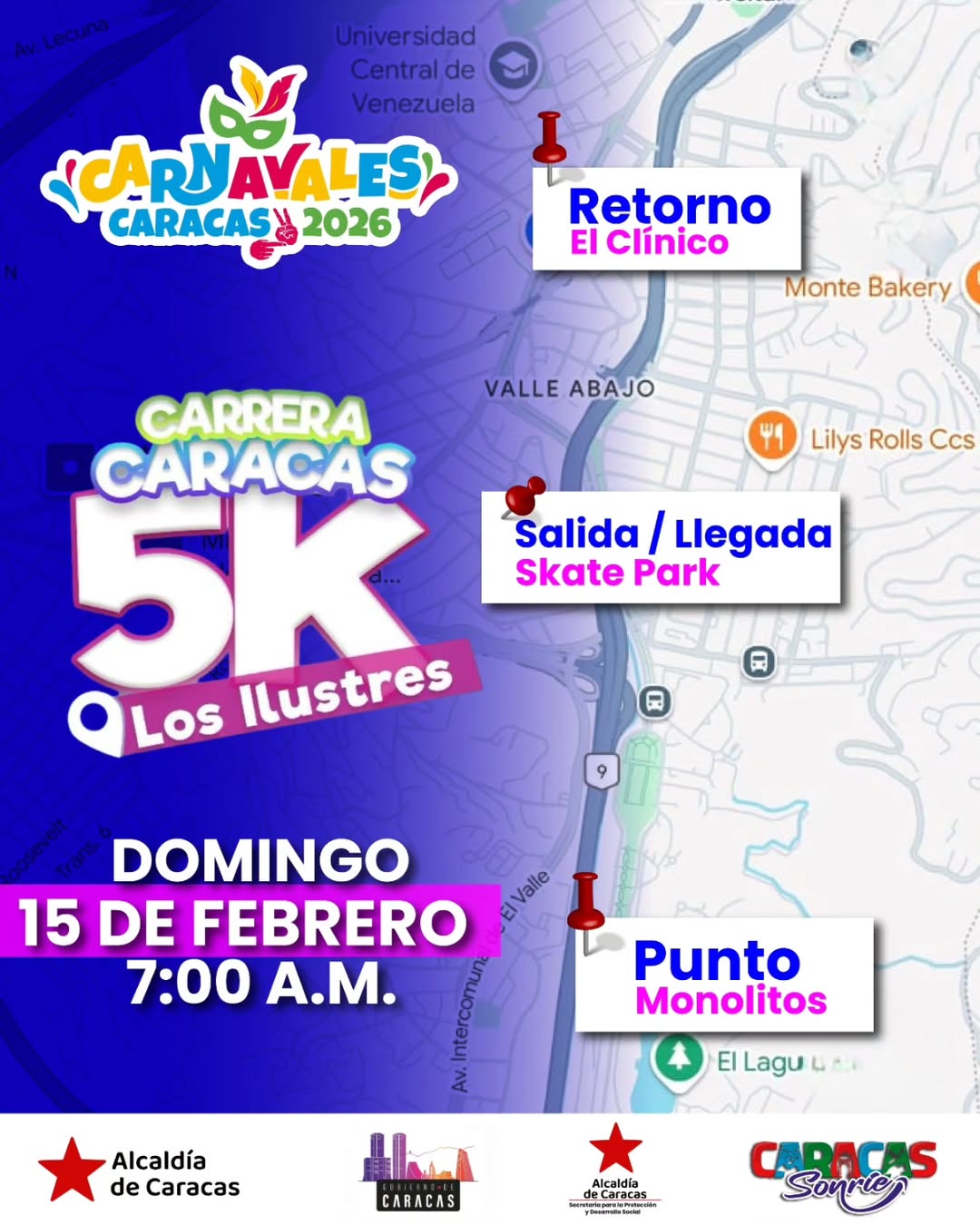 11/02/26.- Tal como fue anunciado por la alcaldesa del Municipio Bolivariano Libertador de Caracas, Carmen Meléndez, durante la transmisión de la edición número 117 del programa radial Habla Caracas, desde la Comuna Los Flores en Revolución, ubicada en la parroquia Sucre, este domingo 15, se llevará a cabo la Carrera Caracas 5K, a partir de las 7:00 am, como una de las actividades centrales de la celebración de los carnavales en la ciudad capital.