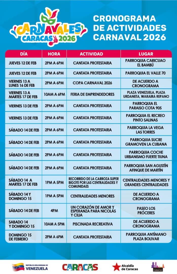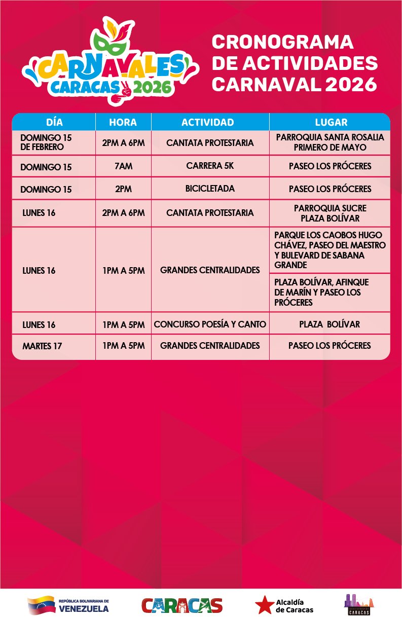 De igual manera la Alcaldía de Caracas y el Gobierno del Distrito Capital informaron de la agenda de celebración de estas fiestas carnestolendas.