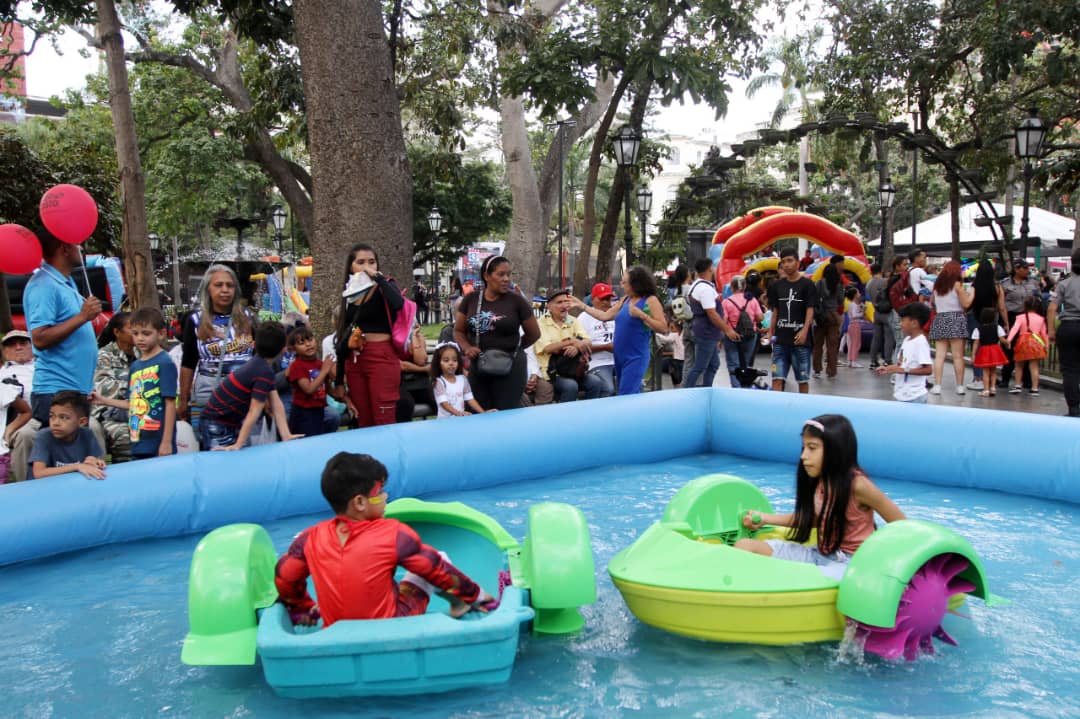 La alcaldesa de Caracas, Carmen Meléndez, junto con el jefe de Gobierno del Distrito Capital, Nahum Fernández, acompañó el recorrido por los espacios recreativos, donde la infancia disfrutó de colchones inflables, piscinas, camas elásticas, caramelos y dinámicas culturales.