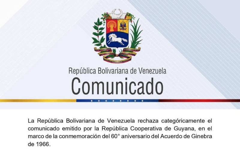18/02/26.- La República Bolivariana de Venezuela, a través de un comunicado oficial publicado en la cuenta de la Cancillería y del ministro de Relaciones Exteriores, Yván Gil, expresó su rechazo categórico al posicionamiento de la República Cooperativa de Guyana con motivo del 60° aniversario del Acuerdo de Ginebra de 1966, que busca resolver la controversia territorial sobre la región del Esequibo.