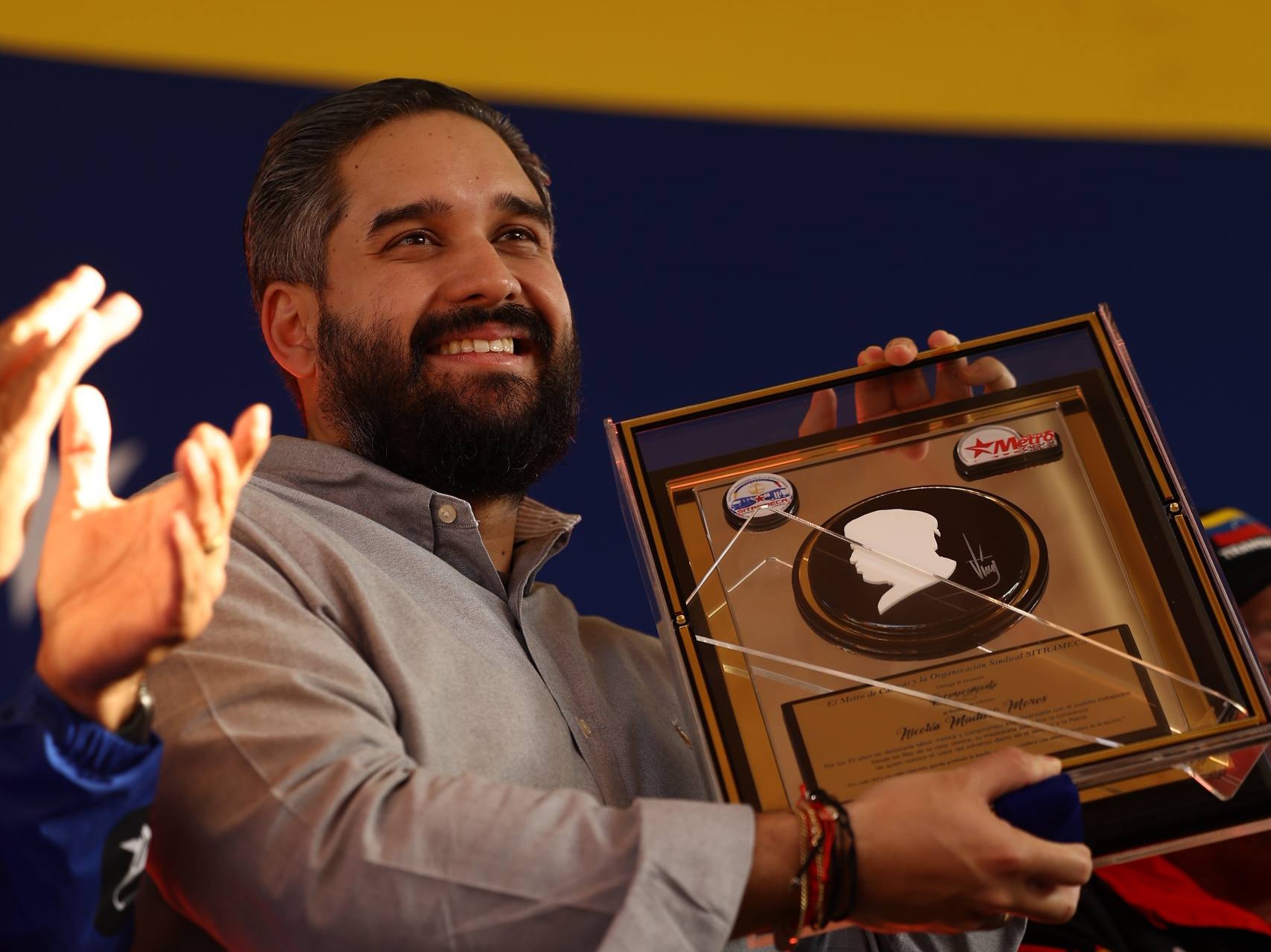 Como parte del homenaje, las y los trabajadores entregaron al diputado Nicolás Maduro Guerra, acompañado por familiares y autoridades del sector, un reconocimiento a la destacada labor del Presidente Obrero en sus años de servicio.