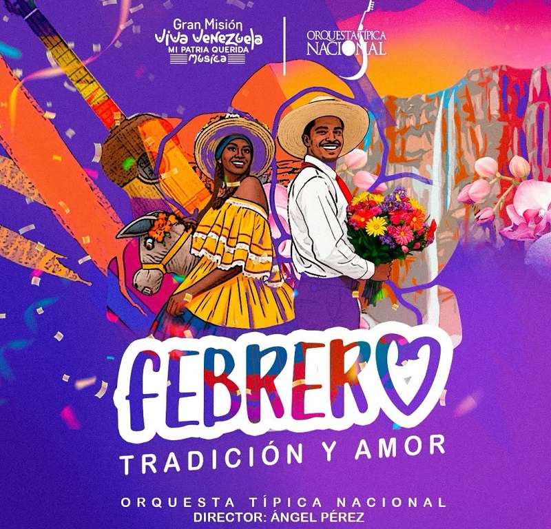 23/02/26.- Los amantes de las actividades de la cultura y el arte tendrán una buena cita el sábado 28 de febrero, día en el que podrán disfrutar al máximo del concierto “Febrero, amor y tradición” a cargo de la Orquesta Típica Nacional, ente adscrito al Ministerio del Poder Popular para la Cultura.