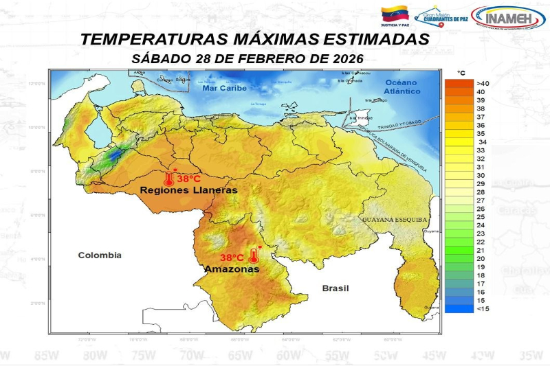 28/02/26.- Instituto Nacional de Meteorología e Hidrología (Inameh) pronostica para este sábado condiciones meteorológicas estables, cielo parcialmente nublado y áreas despejadas en algunos estados, sin embargo prevé presencia de concentraciones de polvo del Sahara y riesgo de Incendios en gran parte del territorio nacional.