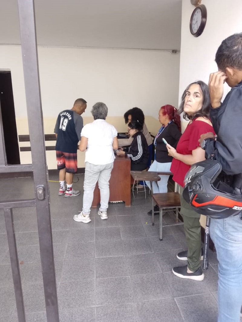 En la escuela Teresa Carreño, en los alrededores de Lomas de Urdaneta, al oeste de la capital, los votantes se apostaron a las puertas desde temprano y esperaron con paciencia para acceder a la institución.