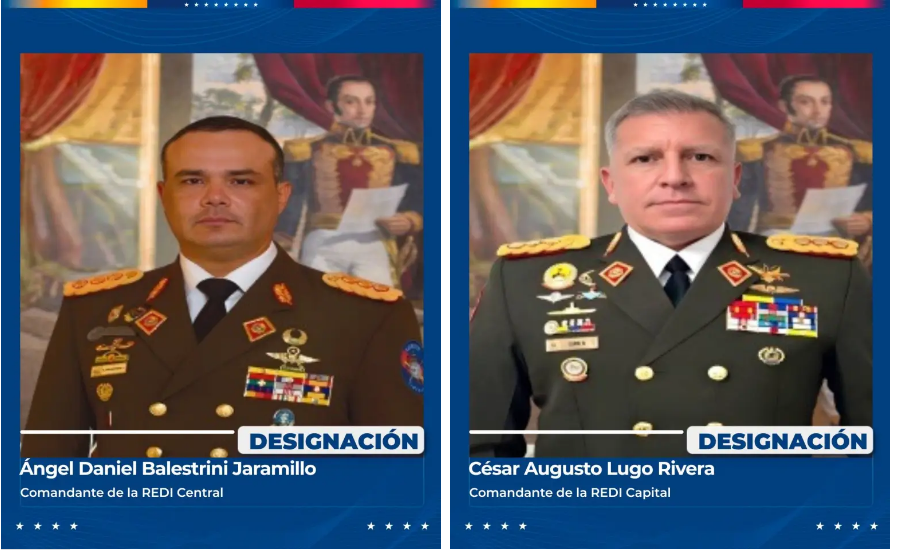 Como comandante de la REDI Capital fue designado César Augusto Lugo Rivera; REDI Central, Ángel Daniel Balestrini Jaramillo; REDI Los Llanos, Gustavo Adolfo Serrano Urdaneta; REDI Oriental, Erasmo Eduardo Ramos Iriza; REDI Occidental, Pedro Esteban González Ovalles; REDI Los Andes, Pablo Ernesto Lizano Colmenter; REDI Guayana, Wilfredo Alexandrer Medrano Machado y REDI Marítima e Insular, Víctor Hugo Borjas Trujillo.