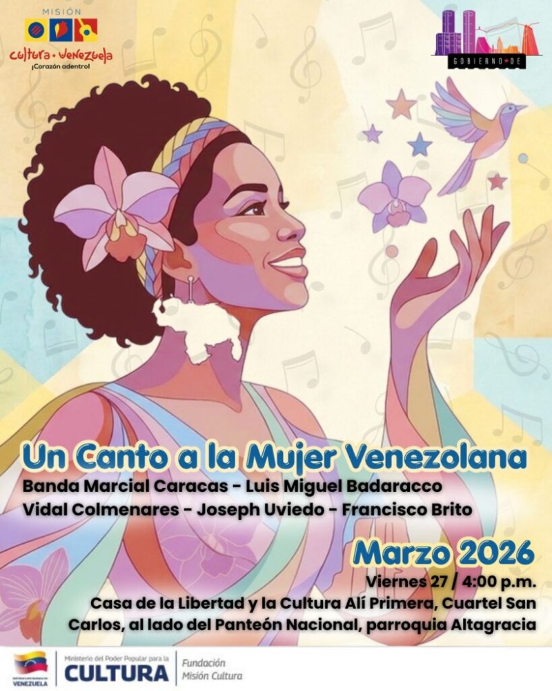 Este encuentro ha sido diseñado por la Misión Cultura, con el apoyo del Gobierno del Distrito Capital conjuntamente con el Ministerio del Poder Popular para la Cultura, como tributo a la mujer en rol de columna vertebral de la sociedad.