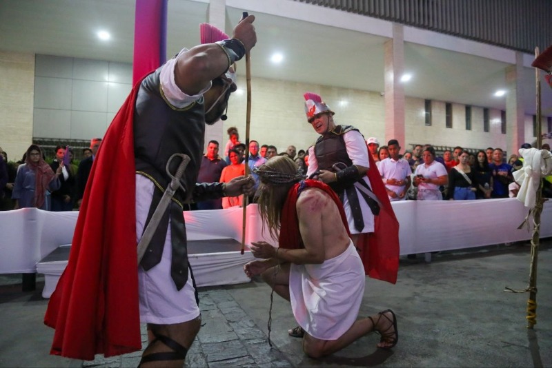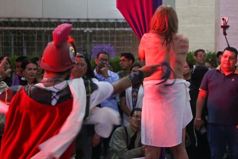 31/03/26.- Cuando el sol comenzaba a ceder su luz al abrazo de la noche, las calles del centro capitalino se convirtieron en un altar vivo donde se desplegó el Viacrucis Central, una travesía sagrada que abrazó el alma de cada asistente. Desde la Esquina de San Jacinto hasta la Esquina Principal, el aire se impregnó de oración, arte y un mar de emociones que tejieron un puente entre el cielo y la tierra.